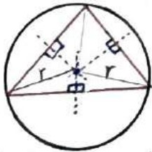 دایره ای که از سه راس یک مثلث می گذرد، دایره محیطی مثلث نامیده می شود. (مرکز دایره محیطی مثلث نقطه همرسی عمود منصف است.)
