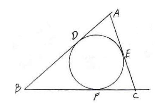 \(\begin{array}{l}AD = AE\\\\BD = BF\\\\CF = CE\\\\ \Rightarrow AD + BD + CF = AE + BF + CE\\\\ \Rightarrow \left( {CF = BC - BF\;,\;AE + CE = AC} \right)\\\\ \Rightarrow AD + BC - BF = AC + BF\\\\ \Rightarrow 12 + 10 - x = 8 + x\\\\ \Rightarrow 2x = 14 \Rightarrow x = 7\end{array}\)