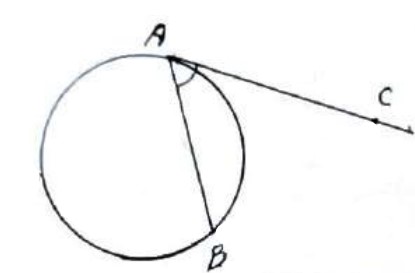 زاویه ای است که راس آن روی دایره قرار دارد و یک ضلع آن مماس بر دایره و ضلع دیگر آن (قاطع دایره) وتر دایره می باشد.