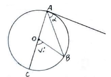 \({\alpha = \frac{{AB}}{2} = \frac{{{{110}^ \circ }}}{2} = {{55}^ \circ }}\)