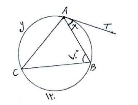 2 در شکل زیر AT بر دایره در نقطه A مماس است، با توجه به شکل زیر مقدار X و Y را بدست آورید.