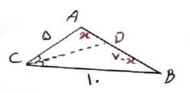 \(\begin{array}{l}\frac{{CA}}{{CB}} = \frac{{AD}}{{BD}} \Rightarrow \frac{5}{{10}} = \frac{{AD}}{{BD}} \Rightarrow \frac{1}{2} = \frac{x}{{7 - x}}\\\\ \Rightarrow 2x = 7 - x \Rightarrow x = \frac{7}{3} \Rightarrow AD = \frac{7}{3}\\\\BD = 7 - \frac{7}{3} = \frac{{14}}{3}\\\\C{D^2} = CA \times CB - AD \times BD\\\\ \Rightarrow C{D^2} = 5 \times 10 - \frac{7}{3} \times \frac{{14}}{3} = 50 - \frac{{98}}{9} = \frac{{352}}{9}\\\\ \Rightarrow CD = \frac{{\sqrt {352} }}{3}\end{array}\)