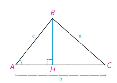 \(\begin{array}{l}\mathop {ABH}\limits^\Delta :{\mathop{\rm Cos}\nolimits} A = \frac{{AH}}{c} \Rightarrow AH = c \times {\mathop{\rm Cos}\nolimits} A\\\\CH = b - AH \Rightarrow CH = b - c{\mathop{\rm Cos}\nolimits} A\\\\{\mathop{\rm Sin}\nolimits} A = \frac{{BH}}{c} \Rightarrow BH = c \times {\mathop{\rm Sin}\nolimits} A\\\\{a^2} = B{H^2} + C{H^2}\\\\ \Rightarrow {a^2} = {\left( {c \times {\mathop{\rm Sin}\nolimits} A} \right)^2} + {\left( {b - c{\mathop{\rm Cos}\nolimits} A} \right)^2}\\\\{a^2} = {c^2}{{\mathop{\rm Sin}\nolimits} ^2}A + {b^2} - 2bc{\mathop{\rm Cos}\nolimits} A + {c^2}{{\mathop{\rm Cos}\nolimits} ^2}A\\\\{a^2} = {c^2}\left( {{{{\mathop{\rm Sin}\nolimits} }^2}A + {{{\mathop{\rm Cos}\nolimits} }^2}A} \right) + {b^2} - 2bc{\mathop{\rm Cos}\nolimits} A\\\\{a^2} = {c^2} + {b^2} - 2bc{\mathop{\rm Cos}\nolimits} A\end{array}\)