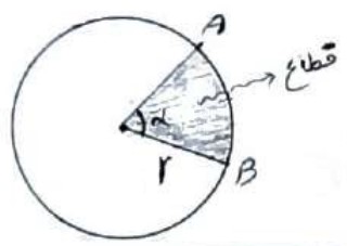 مساحت قطاع = \(\frac{\alpha }{{360}} \Rightarrow S = \frac{\alpha }{{360}} = \pi {r^2} \Rightarrow S = \frac{{\pi {r^2}}}{{360}}\alpha \)
