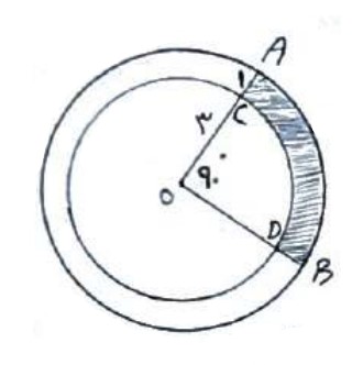 طول کمان CD = \(\frac{{2\pi r}}{{360}}\alpha = \frac{{2\pi \times 3}}{{360}} \times 90 = \frac{{3\pi }}{2}\)