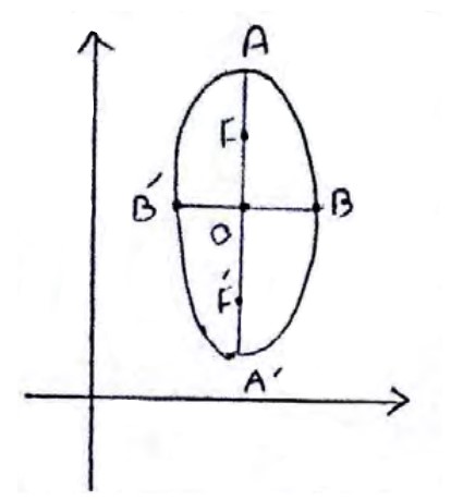 مخرج \({y^2}\) بزرگ تر باشد، قائم در بیضی قائم A و \(A'\) و O و F و \(F'\) هم طول و B و \(B'\) و O هم عرض هستند.